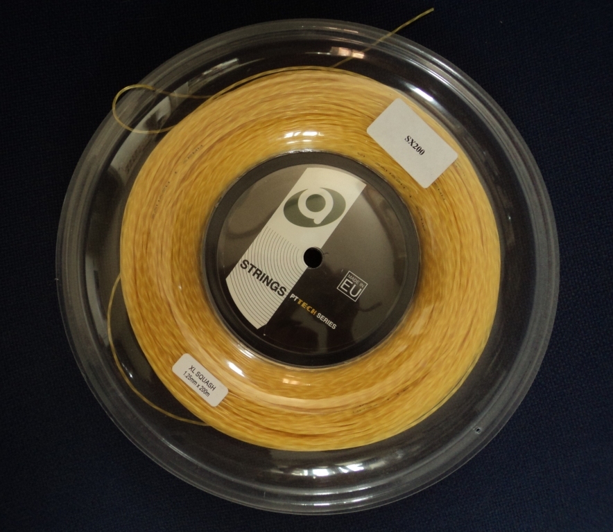 'Imitation gut' line - this is NOT Perlon but a multi-core line with a mesh-weave sheath (all in one extrusion). It is designed for stringing squash racquets! When a weight is put on it this will get a bit longer but will revert to its original length when the weight is removed, unlike the old nylon lines which continue to stretch all the time they are under load, and stay stretched when the weight is removed.